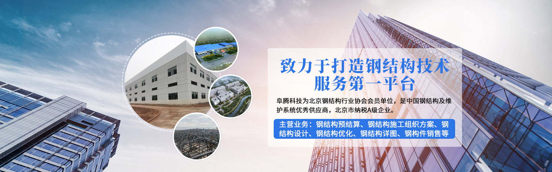ABOUT US北京阜騰科技發(fā)展有限公司坐落于北京●順義,是一家以鋼結(jié)構(gòu)研發(fā)技術(shù)服務(wù)為基礎(chǔ)、鋼結(jié)構(gòu)構(gòu)件銷售為主的公司,擁有近20年的行業(yè)經(jīng)歷。